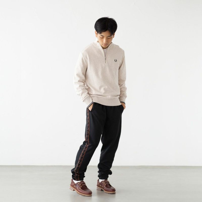 セットアップになるトラックジャケットはもちろん、クラシックな雰囲気でシャツやワークジャケットなどとの相性も抜群。フレッドペリーお馴染みのローレル刺繍テープで、コーデにさりげないアクセントを加えることができます。