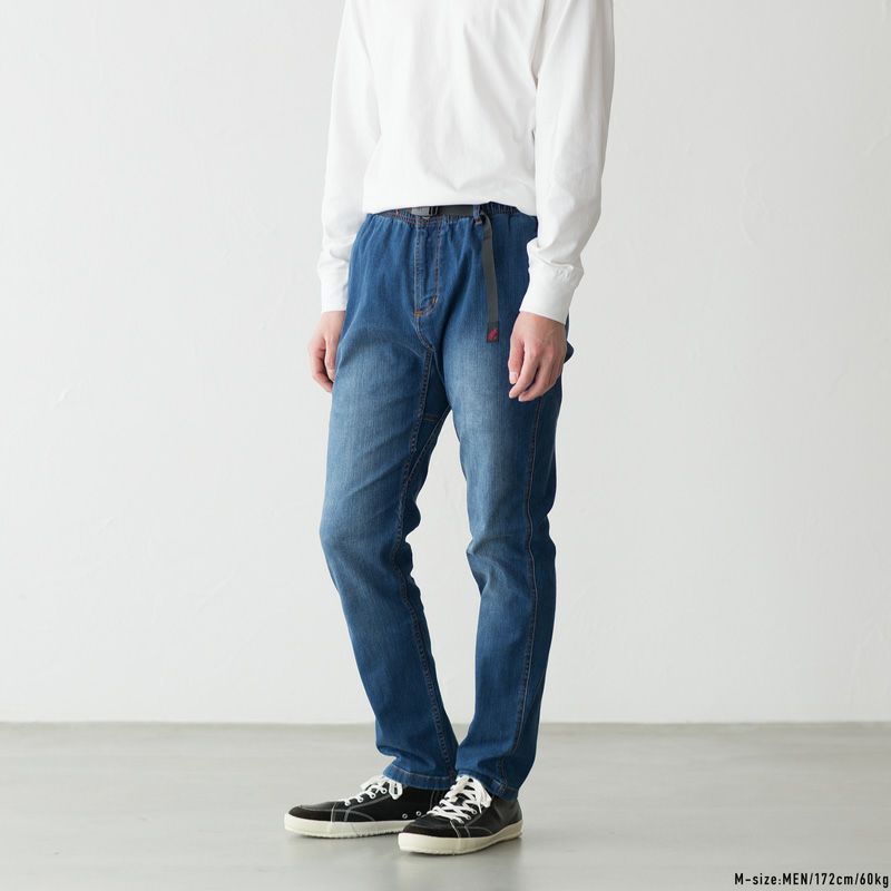 ブランドのルーツであるクライミングシーンにおける機能性を残しつつ、現代のライフスタイルに合わせた細身のシルエットが特徴の、Gramicci定番"NNシリーズ"。裾にかけて細くなるテーパードシルエットですが、伸縮性に優れ、程よいハリコシのある、オーガニックコットン使用のストレッチデニムを使用していますので、アクティブなシーンにも対応可能です。1年を通して着用いただけるオールマイティパンツです。