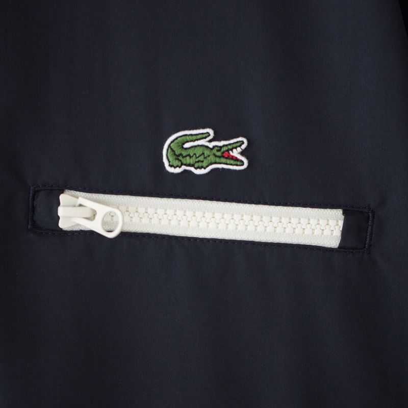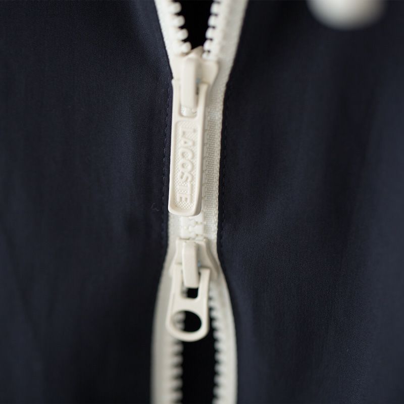 ラコステのヘリテージから着想を得たデザイン、リサイクルポリエステルタフタ素材を使用。クラシックなデザインながら、メッシュ裏地と脇下のベンチレーションホールによる通気性や撥水性など、タウンユースウェアとしての現代機能を備えたLACOSTEらしいジップジャケットです。