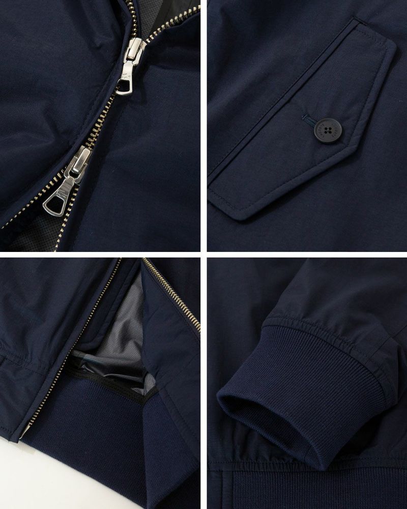 チンストラップやサイドポケットのフラップ、袖や裾のリブニットなど、スイングトップらしいディテールをしっかりと備えています。