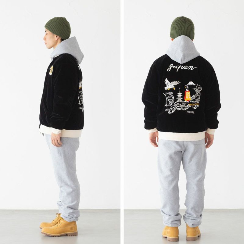 ・表地には、ベロア生地に前後スカジャン風の刺繍を入れています。