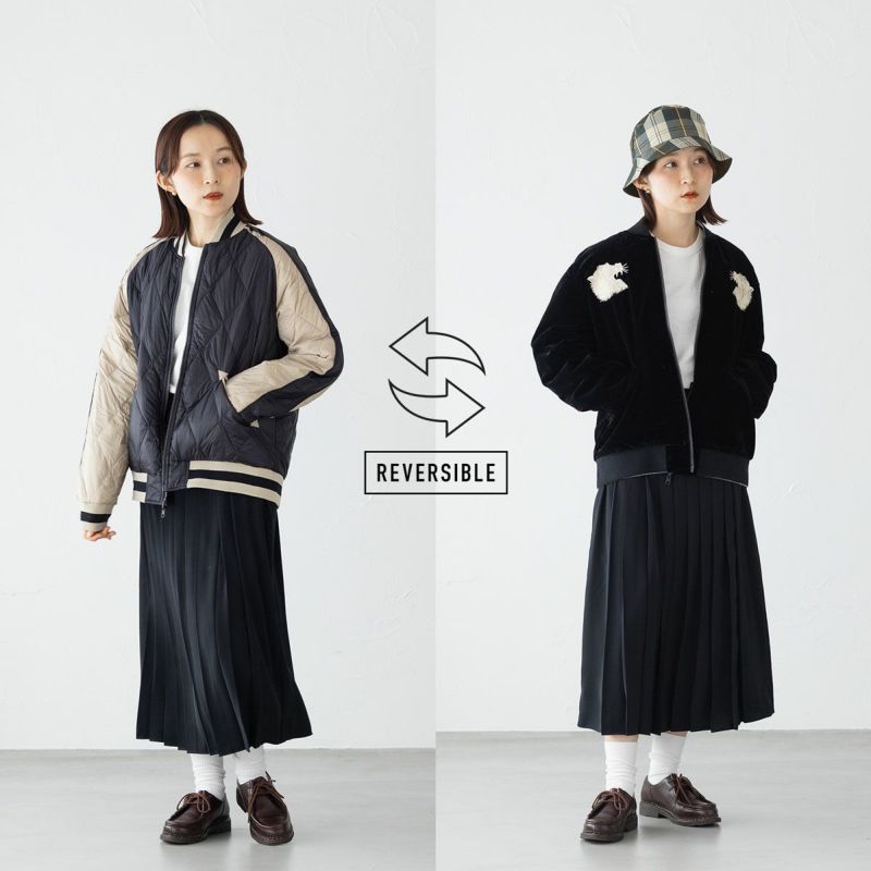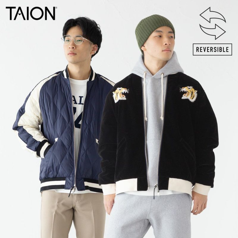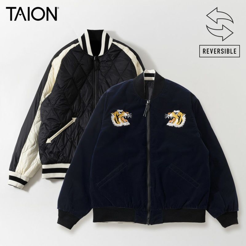 高品質なダウン素材で話題沸騰中のブランド「TAION」が手がけたリバーシブル仕様の両面スカジャン。
