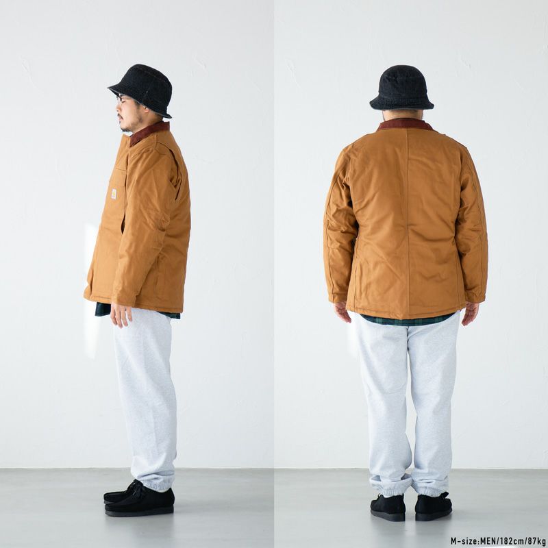 「デトロイトジャケット」、「チョアコート」に次ぐカーハートの定番アウター、トラディショナルコート。コーデュロイの切り替え襟のついたクラシックなデザインで、厚手のコットンダック生地が渋く男らしい魅力を放ちます。