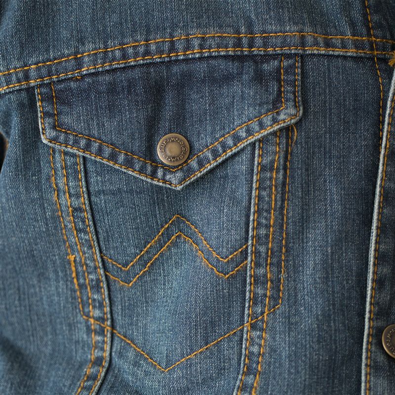 Wrangler ユーズド加工デニムのブランケット付きジャケット。