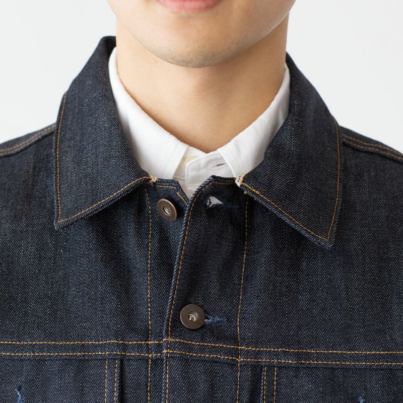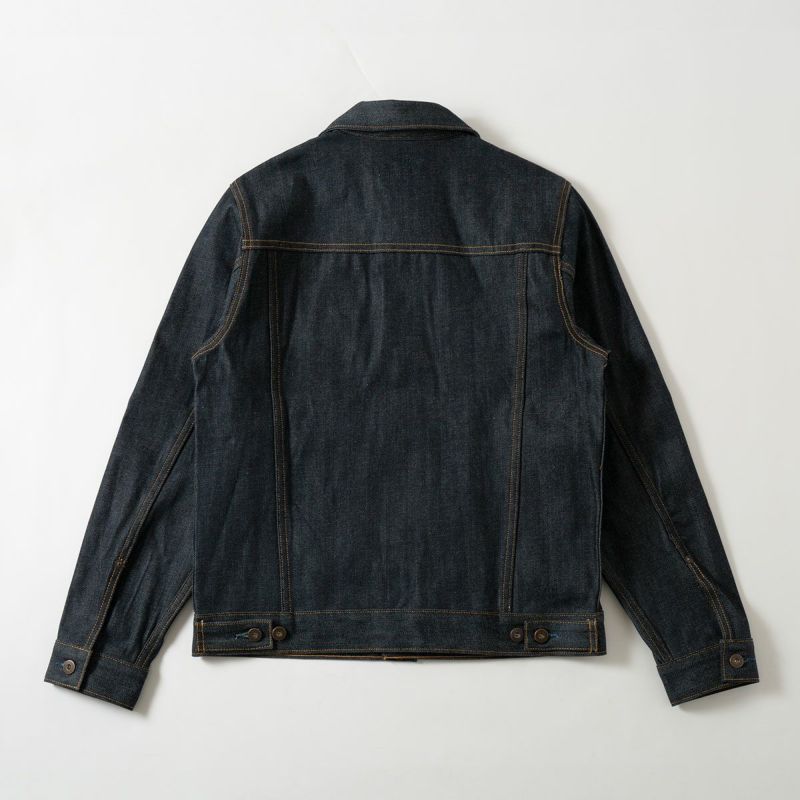 胸にボタンが2つ、左右にサイドアジャスターの付いた所謂3rdタイプデニムジャケットのベーシックなディテールです。セルビッチのデニムジャケットには珍しく、サイドポケットもついています。