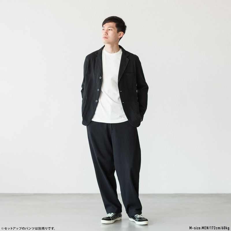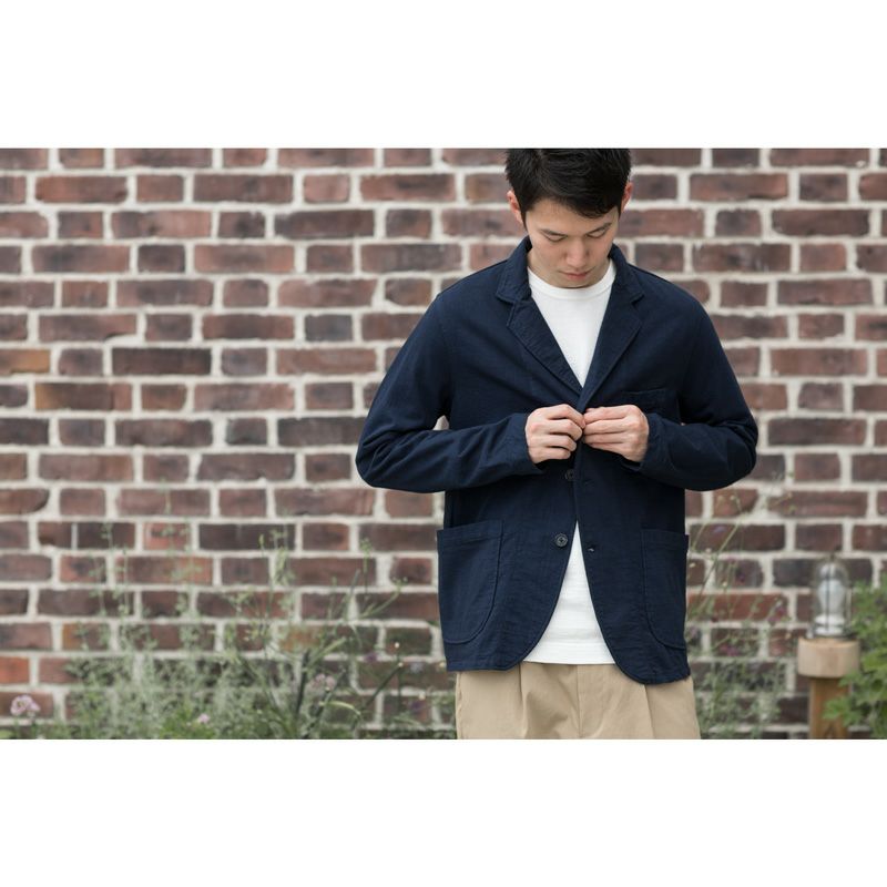 風合いがよくヘタらずに長く着られる、度詰め吊り編み天竺で仕立てたテーラードジャケット。