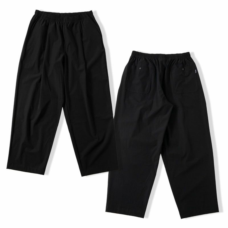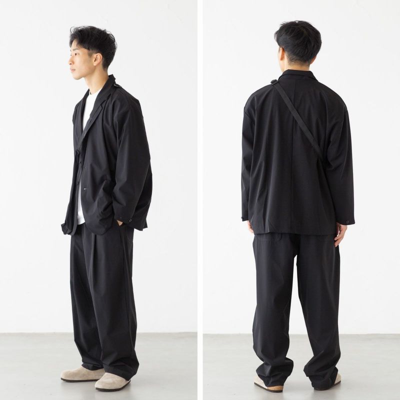 パンツは少しテーパードがかかったワイドシルエットで体型の出にくい形です。