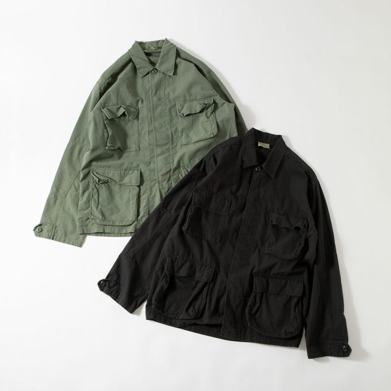 本格ミリタリー仕様のリップストップ素材にハードウォッシュを施したジャケット。