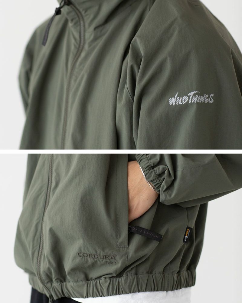 左袖のWILD THINGSリフレクタープリント、裾のCORDURA刺繍がミリタリーらしいアクセントに。