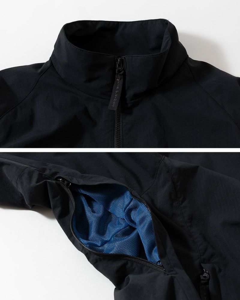 肌離れのよいメッシュを裏地に採用し、脇下のファスナーベンチレーションを開けることで内部の熱を逃がすことが可能。