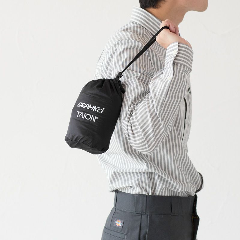 インナーダウン専門ブランド「TAION」とグラミチがコラボしたノーカラージャケット。アウターの中着としてジャンルレスに活躍するのはもちろん、春秋は Tシャツ・シャツ・パーカーなどの上に羽織るアウターとしても活躍します。