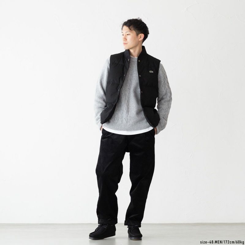レトロなアウトドアスタイルのアイテムを鹿の子素材でアレンジした、ラコステの秋冬定番ピケダウンベスト。従来品と比べてさらに柔らかな素材を採用し着心地がアップしています。幅広のリブニットカラーやボタンフロントなど、よりリラックスムードを高めたディテールデザインもポイント。