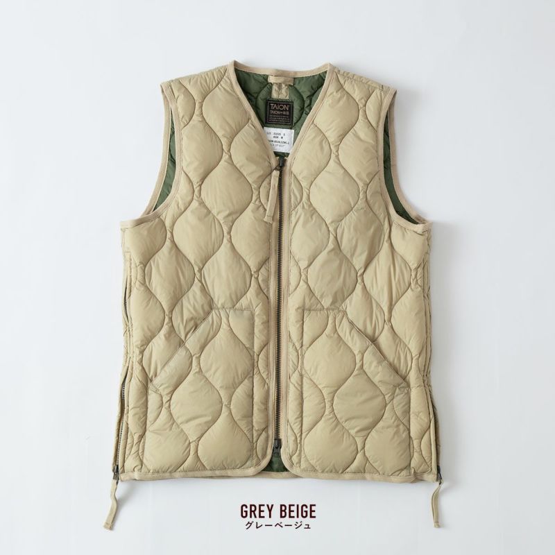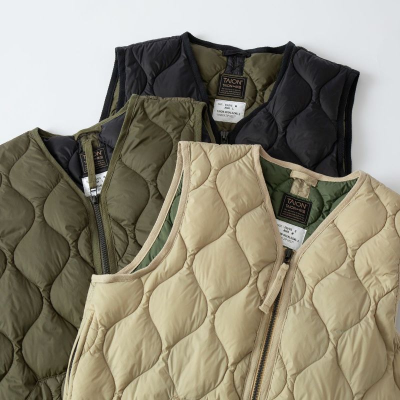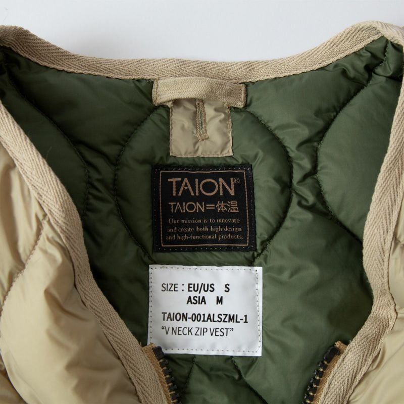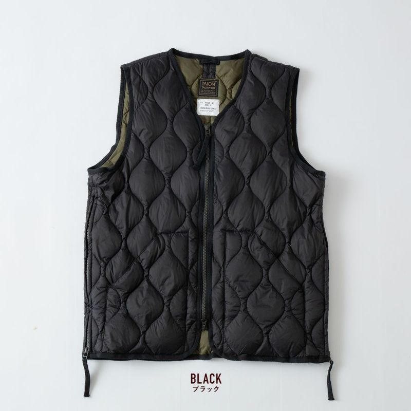 タイオン ミリタリー Vネック Wジップ ダウンベスト ソフトシェル TAION-001ALSZML-1 メンズ レディース パッカブル 収納袋付き