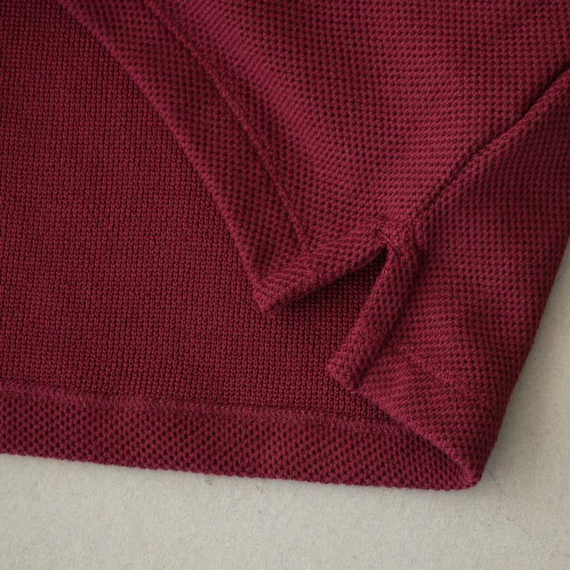 環境に配慮されたリサイクルポリエステルとオーガニックコットンの混紡糸を使用した、カノコ素材のポロシャツです。カノコの目をやや大きめにして凹凸を持たせ、高い通気性とサラリとした肌ざわりを実現。夏場の暑い時期でもドライな着心地です。肩幅、身幅、袖幅にゆとりのあるリラックスシルエット。大きめのボタンと左胸に入れたワンポイントのCロゴ刺繍がデザインアクセントです。