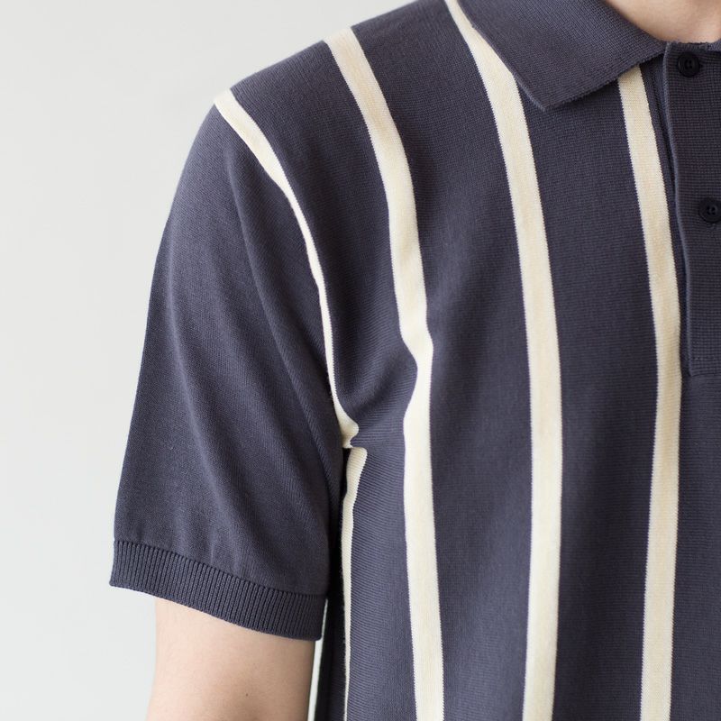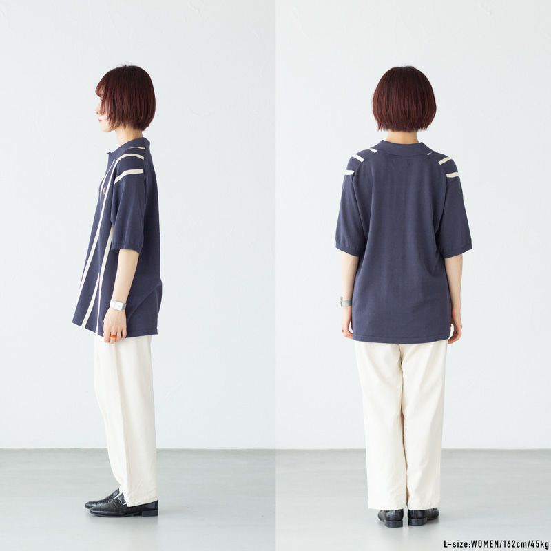 BCI COTTON(Better Cotton Initiative)という世界最大の綿花の持続可能性プログラムの糸を使用。張り、コシのある質感に綿100%ならではの着心地のKNIT POLO。