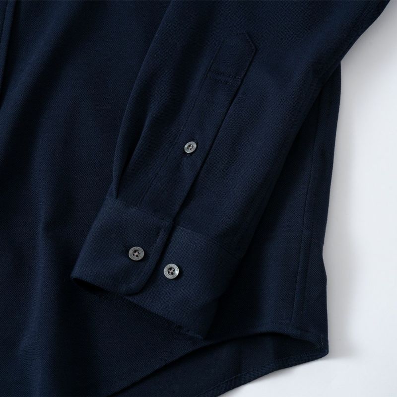 リサイクルポリエステル仕立てのクールマックスエコメイドとコットンをブレンドした、ストレッチ鹿の子素材を使用。カジュアルライクな質感に、汗ばむ陽気の中でも快適性をキープする機能性を備えたボタンシャツです。春夏のきれいめカジュアルからビジネスシーンまで活躍する一枚。