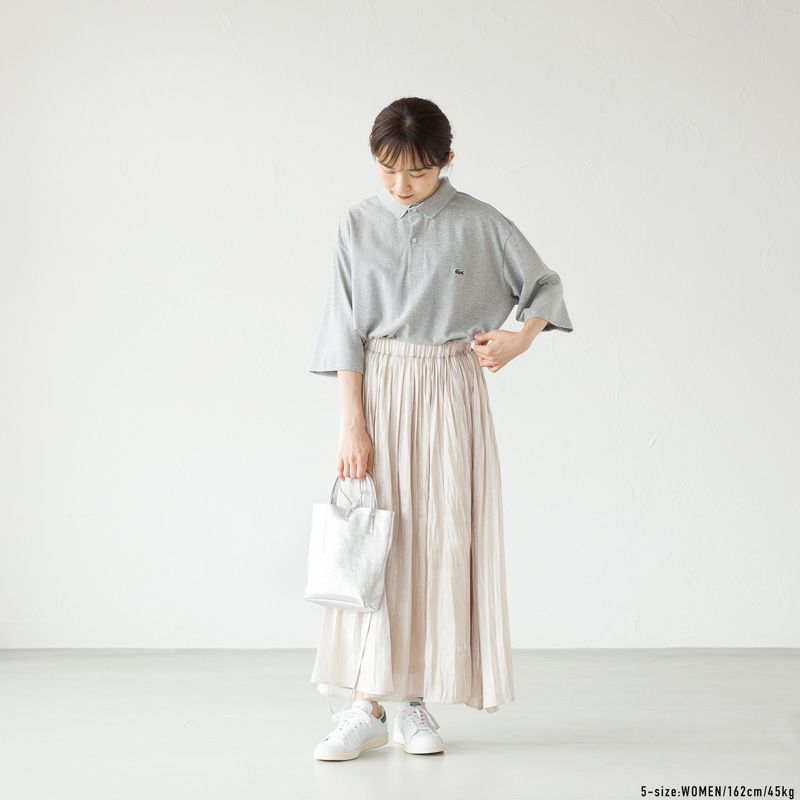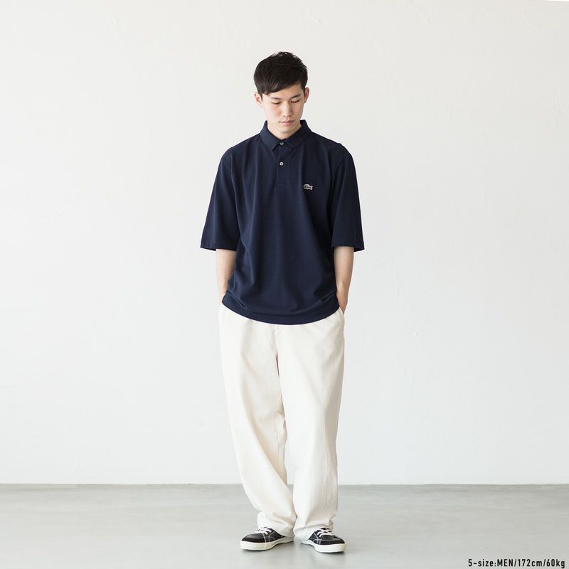 ラコステの人気定番である、丸胴Tシャツの製法を取り入れて開発された、ルーズフィット・ポロシャツ。さりげない新鮮さをプラスする変形リブ衿に、ルーズになりすぎないボリューム抑えめの五分袖を備えています(袖口はリブなし)。30代以上のお客様にもお勧めしたい、リラックス感がありながらスマートに着れる新シルエットです。