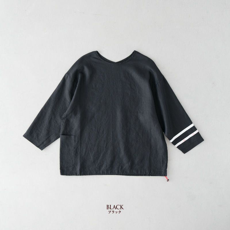 フランス、ブルゴーニュ地方の老舗ワークウエアブランド、“ヴァンソンエミレイユ”の歴史と精神を継承した日本企画のMADE IN JAPANプロダクト。クルーネックのフロントと浅めのVカッティングのバックスタイル、どちらを前にしても着用できる2WAYプルオーバーです。ネップの少ないなめらかなリネン100%を使用。裾を絞れるドローストリング付でシルエットチェンジも叶います。着込むほど肌になじむ麻素材は春夏のマストハブ。メンズアイテムですが女性がオーバーサイズで着こなすのもオススメです。