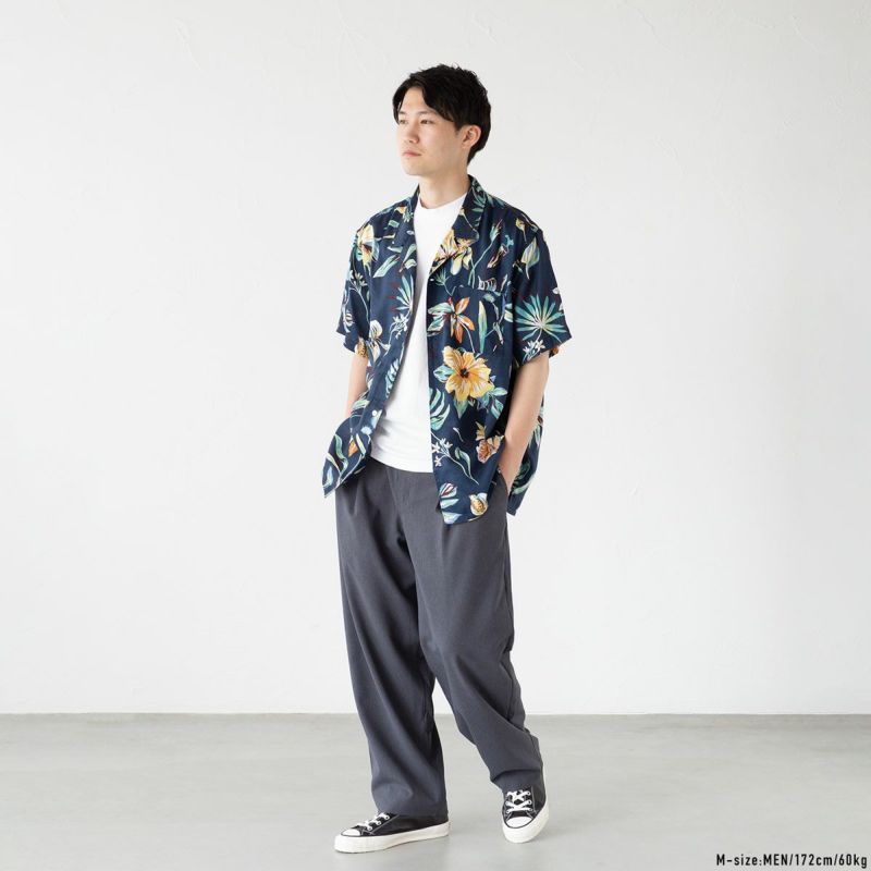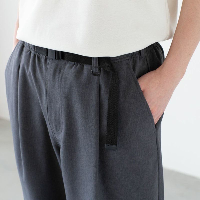 こちらは麻のような風合いでドライなシャリ感、軽さ、シワになりくいイージーケアが魅力のワイドパンツ。ゆとりを持たせた体系選ばないシルエットで品よく着こなすことができます。