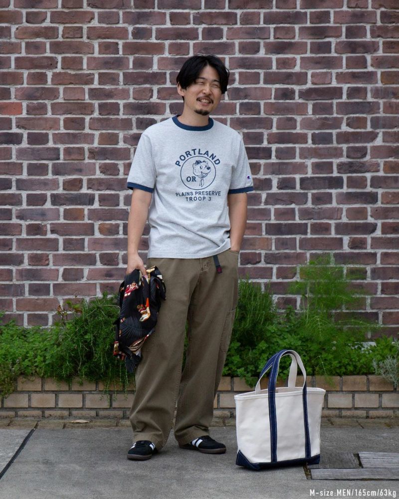 胸には「ヘビーデューティ」のテーマに基づき、豊かな自然で知られるオレゴン州ポートランドの文字とボーイスカウトを象徴する熊のマスコットをプリントしています。