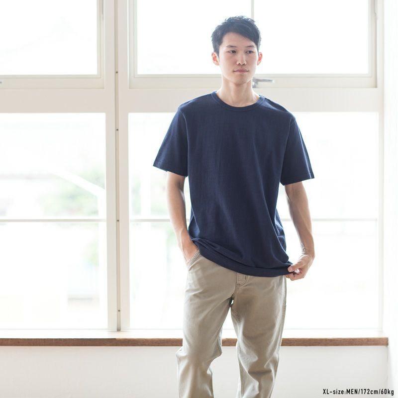 見た目も肌ざわりも最高の風合い、コットンを贅沢に使い、着込んでもヘタらない丈夫さを追求した、度詰め天竺吊り編みTシャツ。