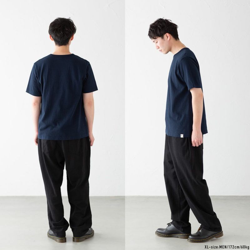 おち綿(リサイクルコットン)の斑糸でさらりとナチュラルな風合いに仕立てた、ネップスの半袖Tシャツ。