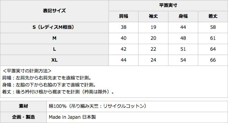 さらりとナチュラルな風合い、リサイクルコットン吊編みTシャツ。