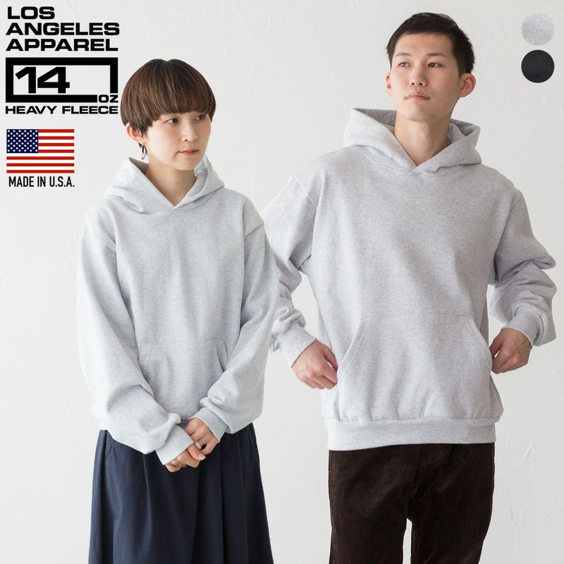 LOS ANGELES APPAREL 14オンス裏起毛スウェットの重厚パーカー。