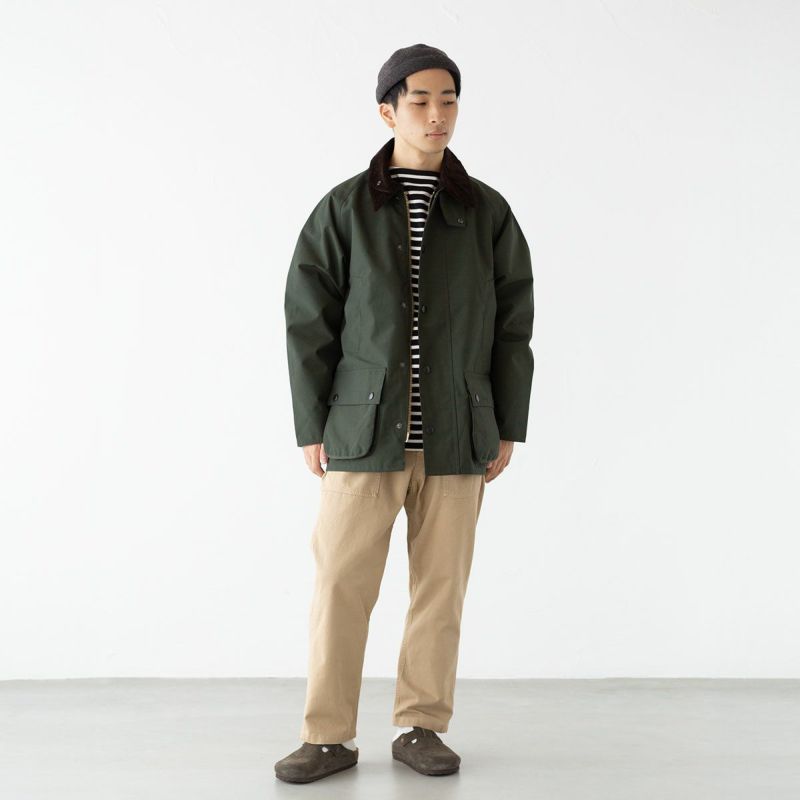 乗馬用に仕立てられたクラシックな作りで人気のバブアー不朽の名作ジャケット「ビデイル」。こちらは2レイヤー生地を使用したオイルドコットン不使用のモデルです。コットン・ポリエステルの表地に浸水を防ぐ特殊なフィルムの裏地を貼り付け、オイル不使用ながらその撥水性を再現しています。