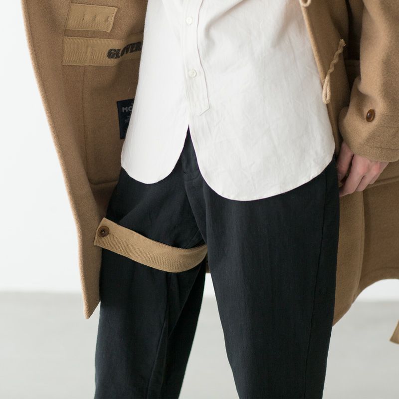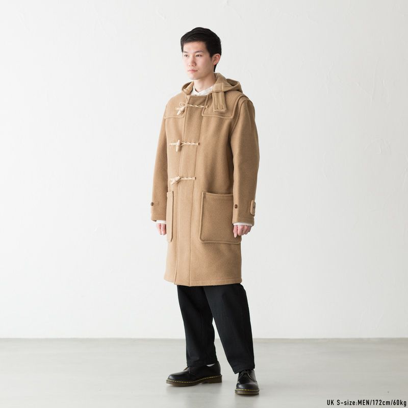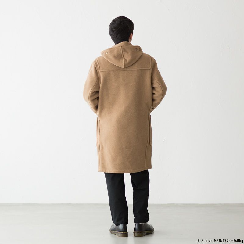 こちらは大戦当時のイギリス海軍が採用したスタイルを受け継ぎ、ダッフルコートがトレードマークだったモンゴメリー将軍の愛称「モンティ」の名を冠した不動の定番モデルです。しっかり肉厚でガサッと感のある素朴な風合いのウールメルトン、手袋をしてても取り外しやすい木製トグル、丈夫な麻ローブの組み合わせが特徴。日本人体型に合うよう改良されたシルエットのおかげで野暮ったくならずスマートに着ていただけます。