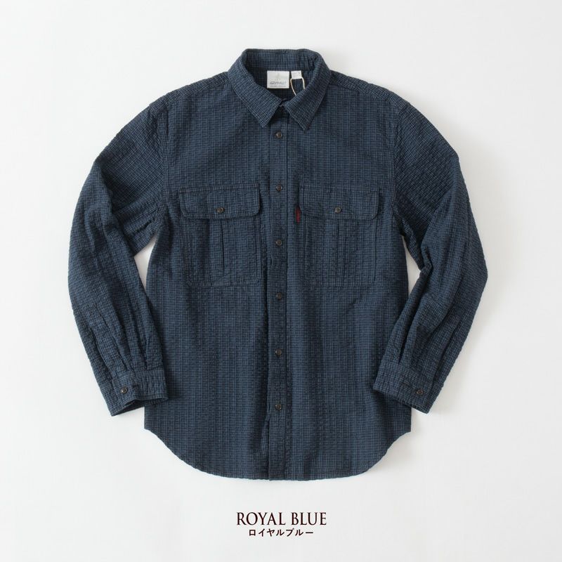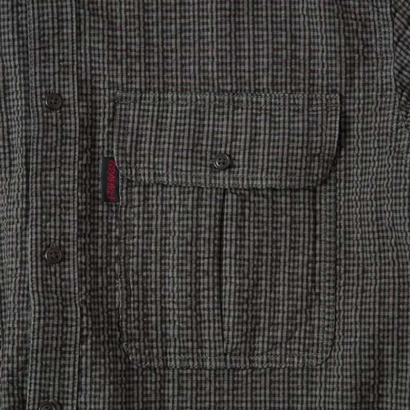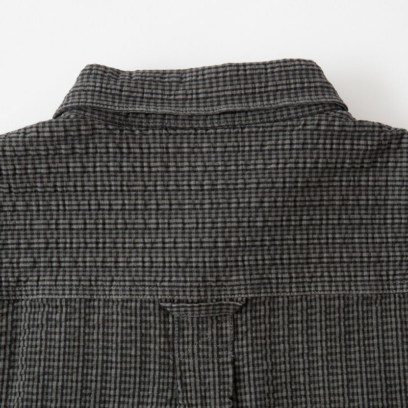 '90年代Gramicciの復刻シアサッカー素材を採用したワークシャツ。細かいポコポコとした凹凸により肌の触れる面積が小さくなり清涼感のある風合い、着心地が実現しています。