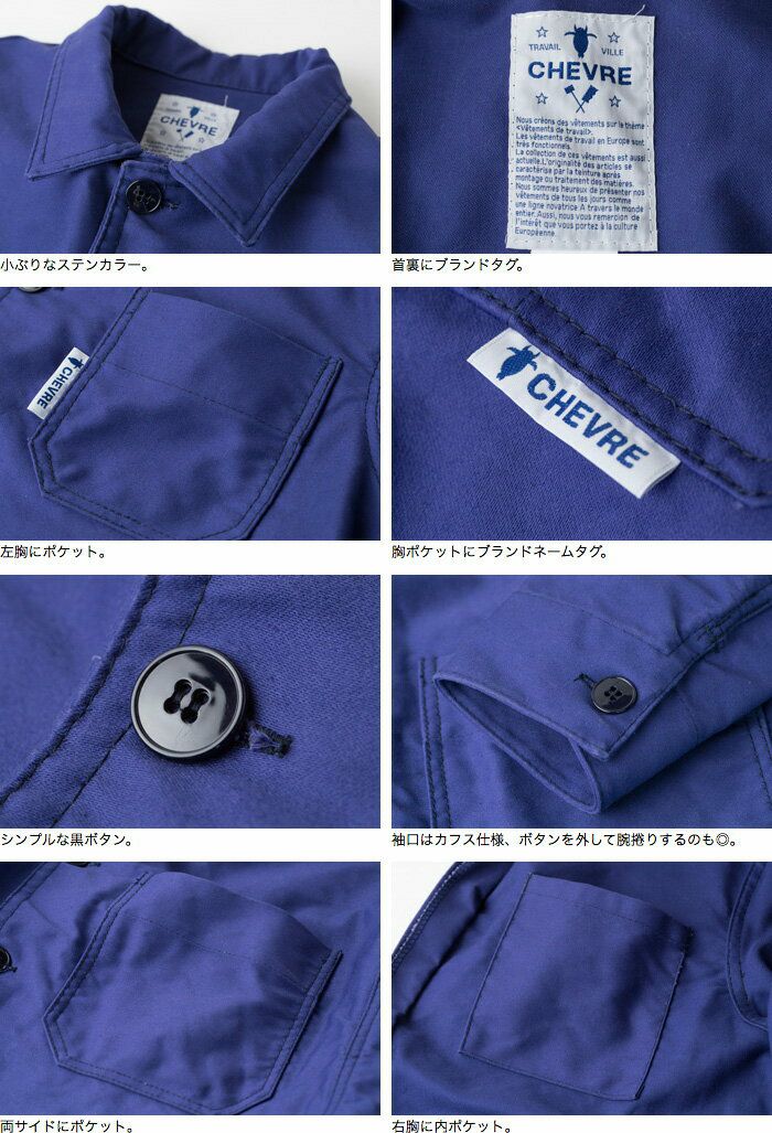 他の画像を見る CHEVRE フランス老舗ワークブランドのワークジャケット。 モールスキン フレンチワーク ジャケット [ワンウォッシュ] BASIC JACKET 9035 シェーブル カバーオール 販売価格 ¥ 17,380 税込 カートに入れる お気に入りに登録する