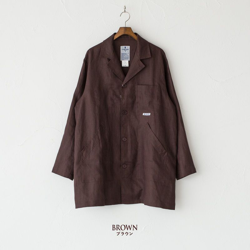 他の画像を見る CHEVRE ナチュラルな風合いの麻素材ショップコート。 シェーブル リネン アトリエ コート 2003L メンズ レディース 男女兼用 販売価格 ¥ 17,380 税込 カートに入れる お気に入りに登録する