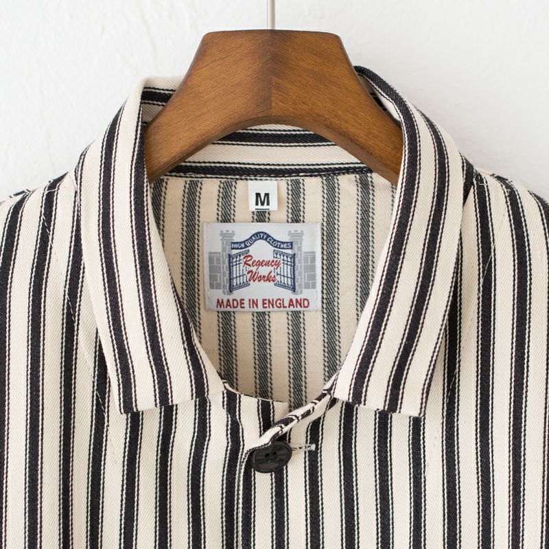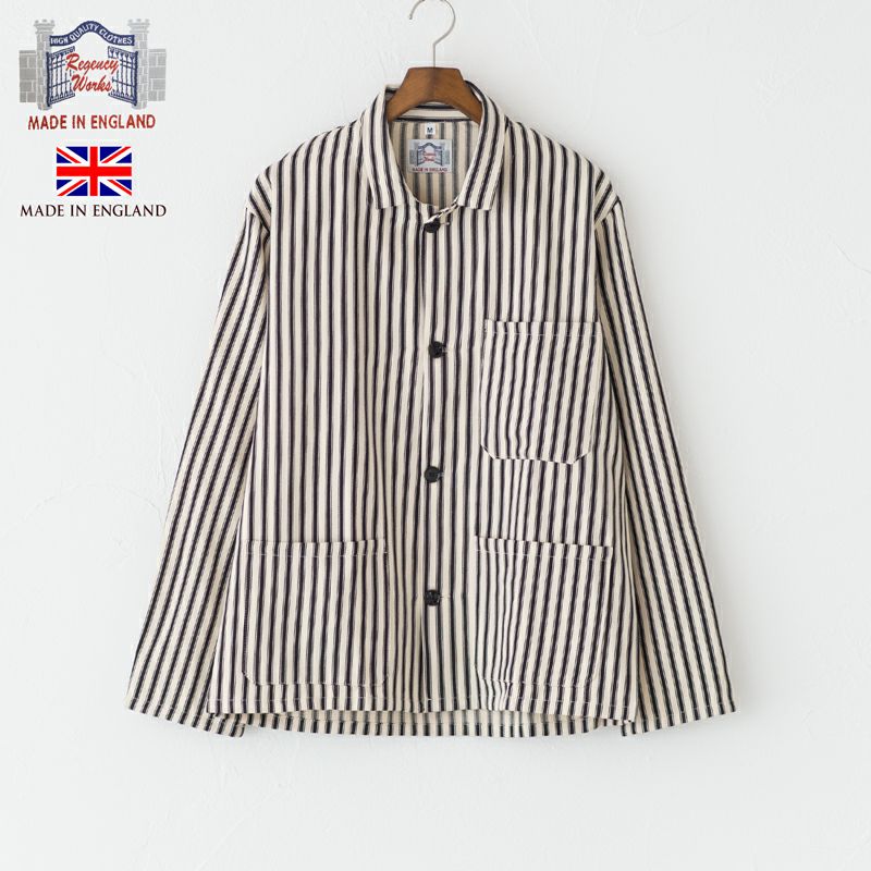 英国生まれのワークウェアブランド「Regecy Works」。シンブルかつ機能的な作業着は、製造業から医療、サービス業に至るまで各分野の職人に愛されています。こちらはツイルストライプのエンジニアジャケット。無駄な装飾を削ぎ落としたシンプルな一着。ソフトで馴染みのいい着心地のコットンツイル製。