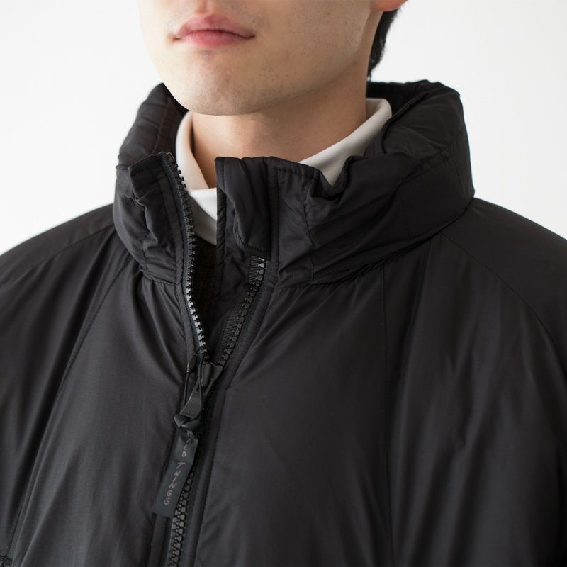 本体シェルにはコットンライクな軽量ナイロンを採用。多少の雨にうたれても保温性を維持できる撥水加工を施しています。インサレーション(中わた)にはオリジナルと同様にプリマロフトを使い優れた軽量性と保温性を確保。毎シーズン驚きとともに進化を続けるワイルドシングスの名作アウターです、いかがでしょうか。