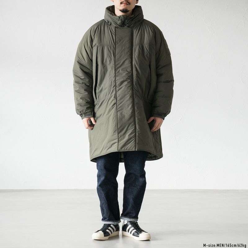 こちらは米軍特殊部隊で採用されている「PCU LEVEL 7」のモンスターパーカーを、日本企画でタウンユース向けにモディファイドした製品。ミッションにおける機能性を突き詰めたシンプルデザインで、男心をくすぐるルックスに仕上がっています。シェルには高密度ナイロンを採用し上品でマットな質感をアップデート。オリジナルと同様にプリマロフトのインサレーションを使い、優れた軽量性と保温性を確保しています。