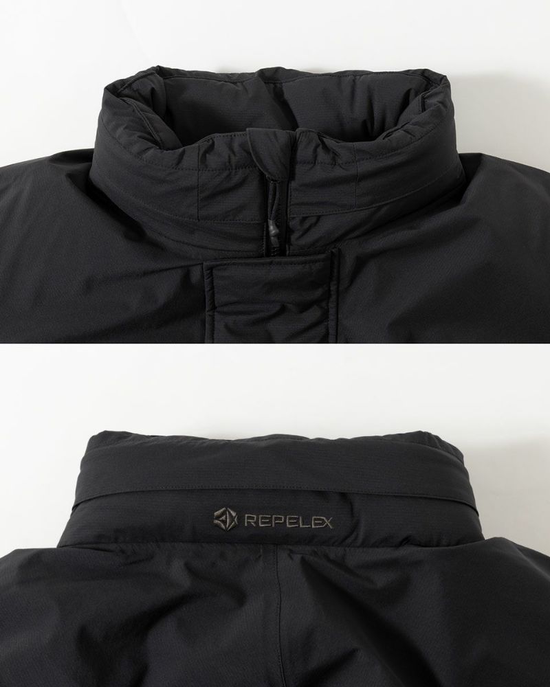 ●REPELEX(リペレックス)はWILD THINGSのオリジナル3レイヤーシェル。撥水、耐水、透湿、ストレッチ、耐久、軽量の6つの効果であらゆるストレス(不快感)を跳ね返します。
