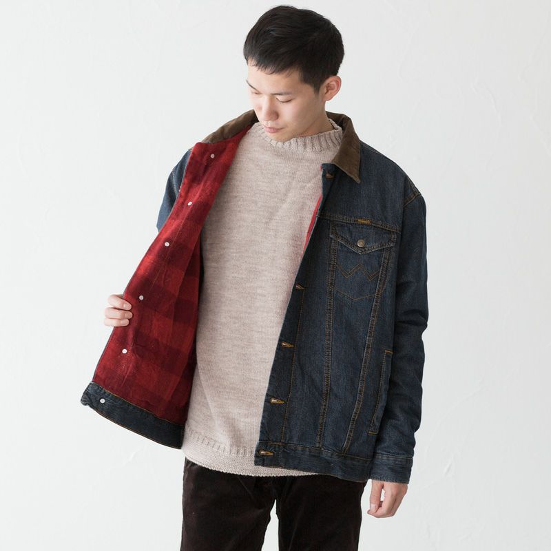Wrangler ユーズド加工デニムのブランケット付きジャケット。