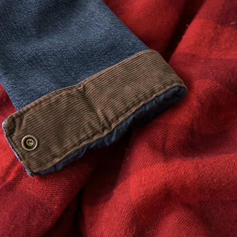 自然に着古したようなユーズド加工ブロークンデニムで仕立てた、ブランケット裏地付きの防寒仕様トラッカージャケット。こちらは現在アメリカ本国で流通している輸入製品です。ブラウンのコーデュロイ襟は立てることで首元の風を防ぐとともに、ワークテイストを引き立たせるアクセントに。ニットやパーカーを着込むことで寒い季節も安心の暖かさを提供してくれる一着、リアルなワークウエアの雰囲気を纏った、堅実剛健なアイテムです。