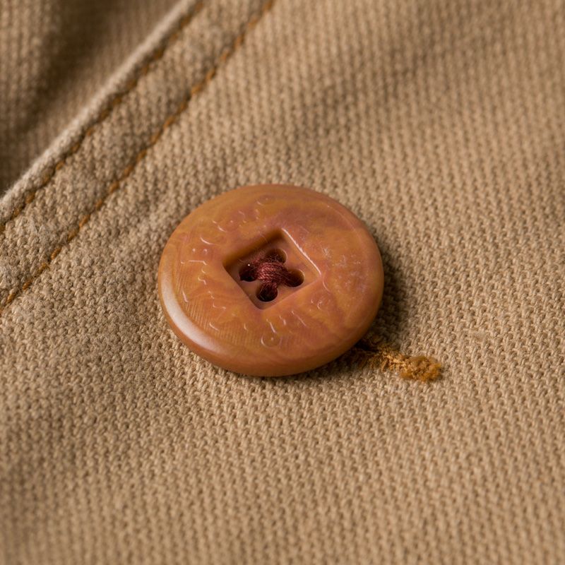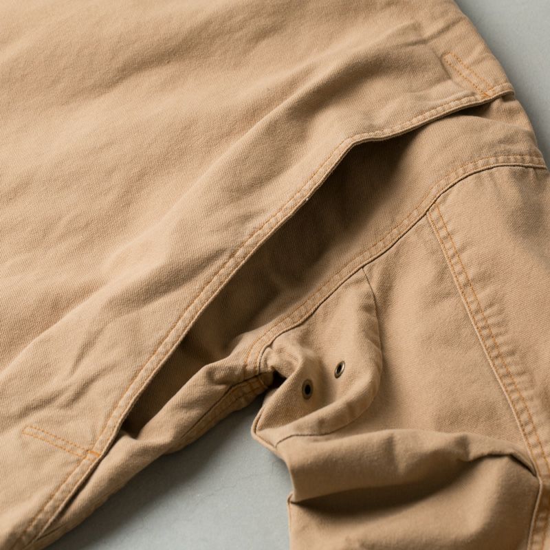 水分をはじき汚れが付きにくい加工済みの厚手のキャンバス地は、ウォッシュ加工された着慣れた風合いが魅力。