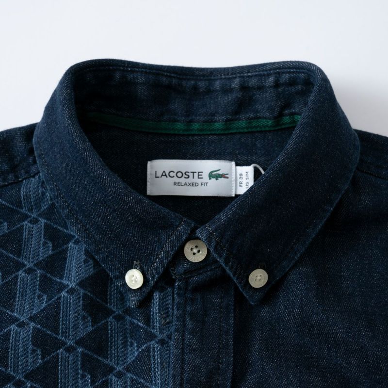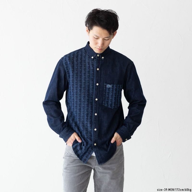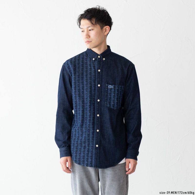 ラコステ アシンメトリー モノグラム デニムシャツ LACOSTE CH003J-99 メンズ ボタンダウンシャツ