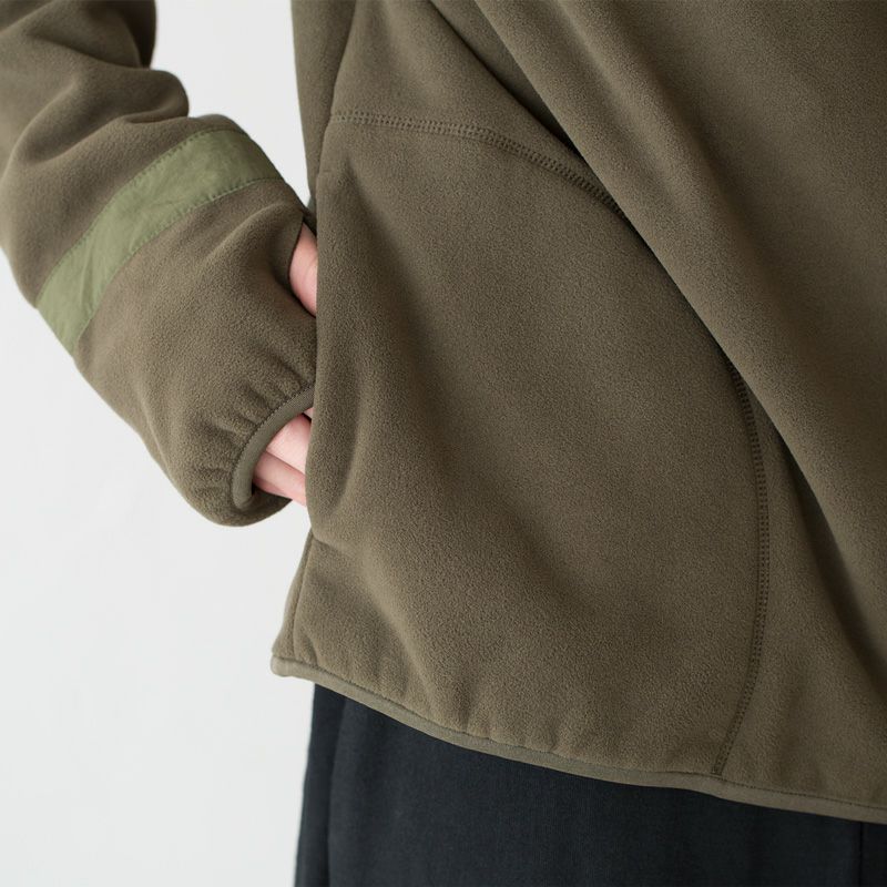 ミリタリーベースのつくりでありながら、ナイロンの胸ポケットやサムホール付きの袖、ハンドウォームポケットなど、アウトドアの雰囲気もプラス。柔らかで軽量でありながら厚手ニット並みにあたたかく寒い季節に快適な着心地を感じれる優秀さ、モンスターパーカやハッピージャケットを組み合わせれば最強の防寒性能を発揮する一着です、いかがでしょうか。