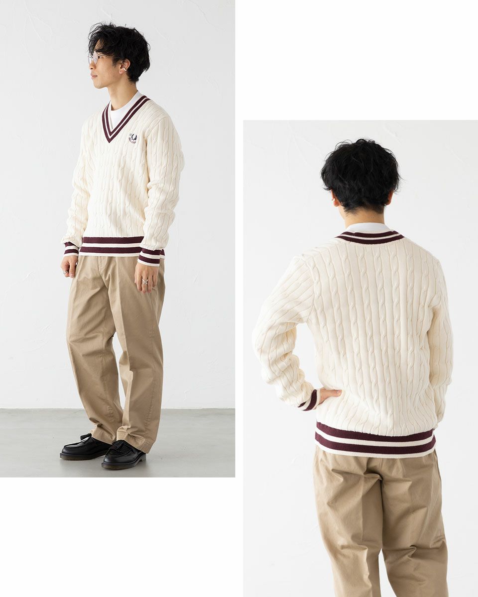 フレッドペリー FRED PERRY ケーブル ニット テニス ジャンパー K9722 メンズ レディース チルデンセーター
