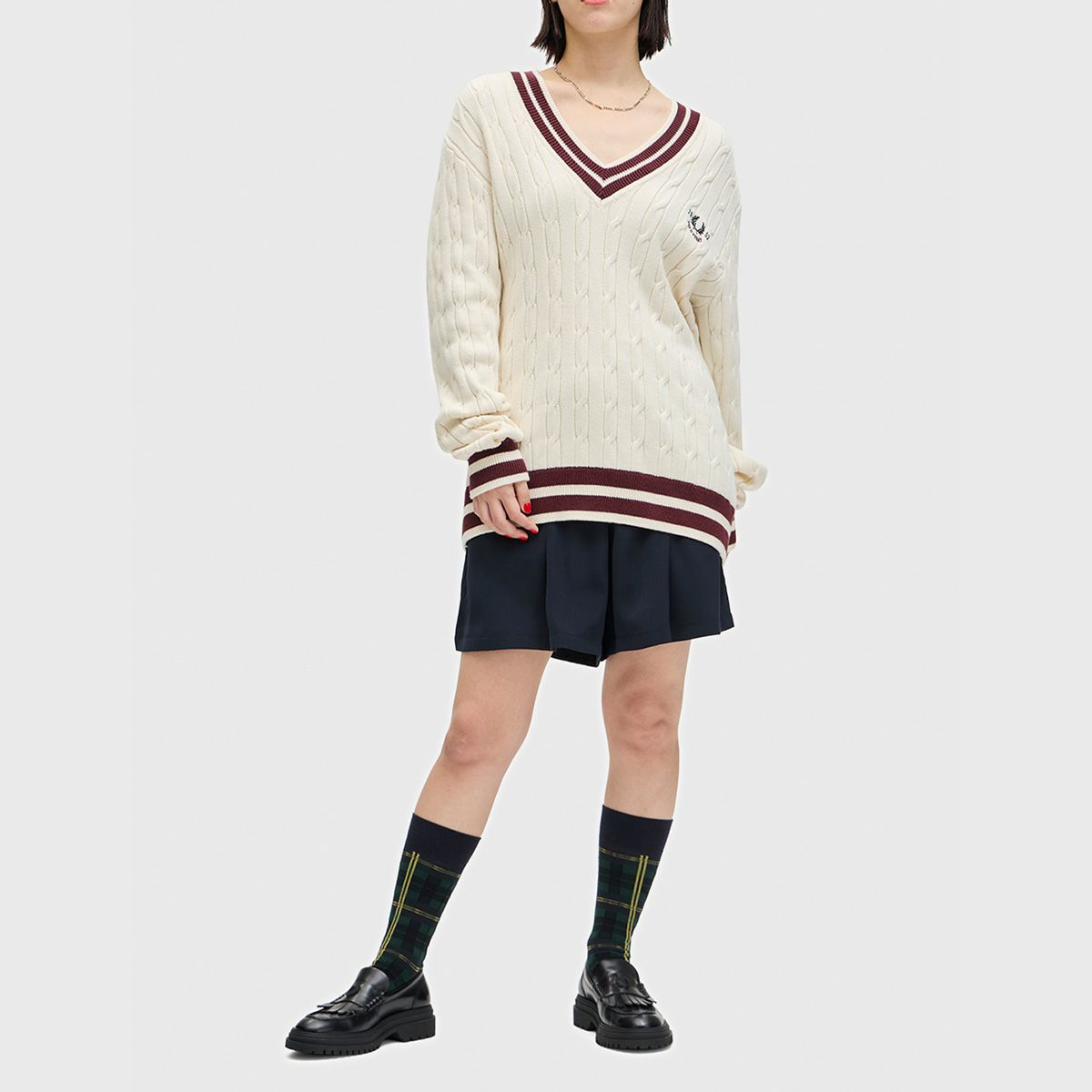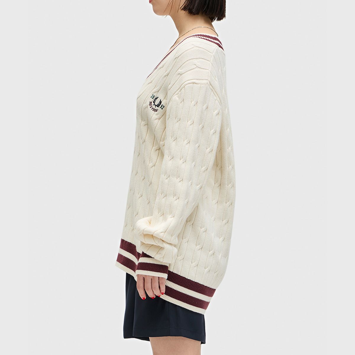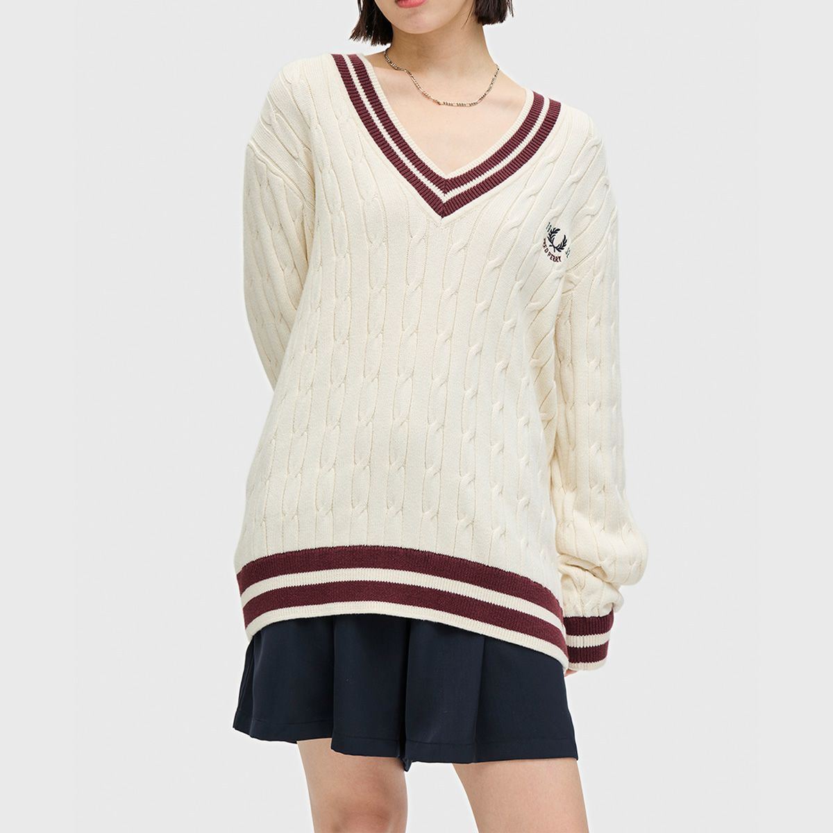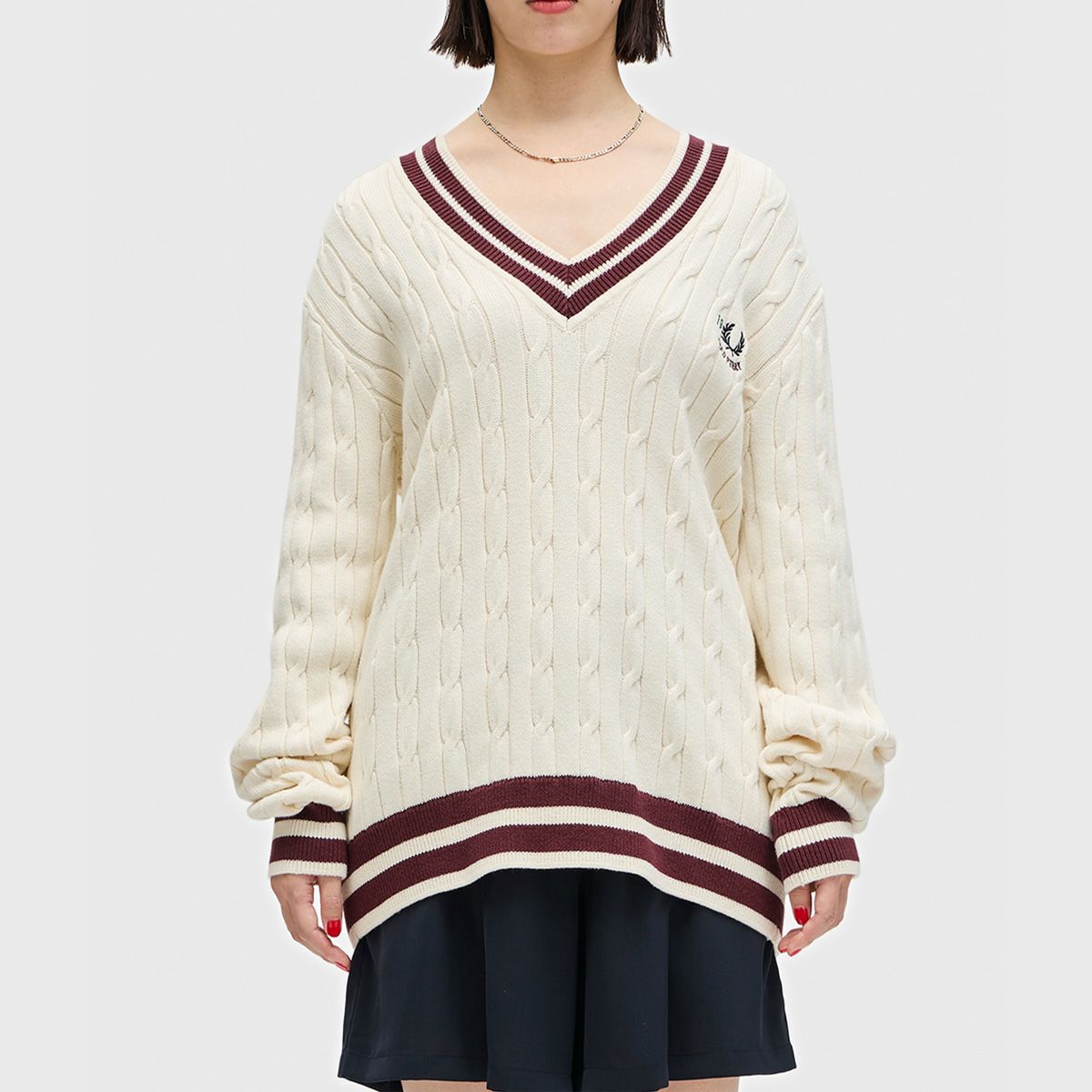 フレッドペリー FRED PERRY ストライプド Vネック ジャンパー チルデン セーター K8541 メンズ レディース テニス ニット クリケットニット 畦編み