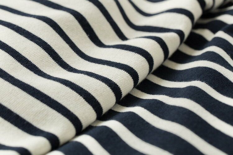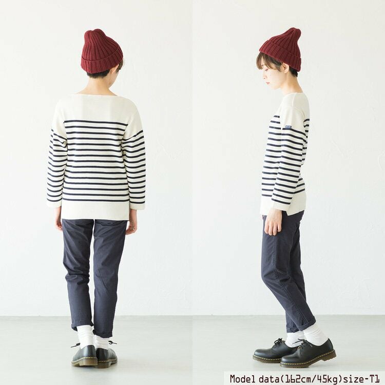 胸元と肩口に無地を使った、すっきとした印象のボーダー。