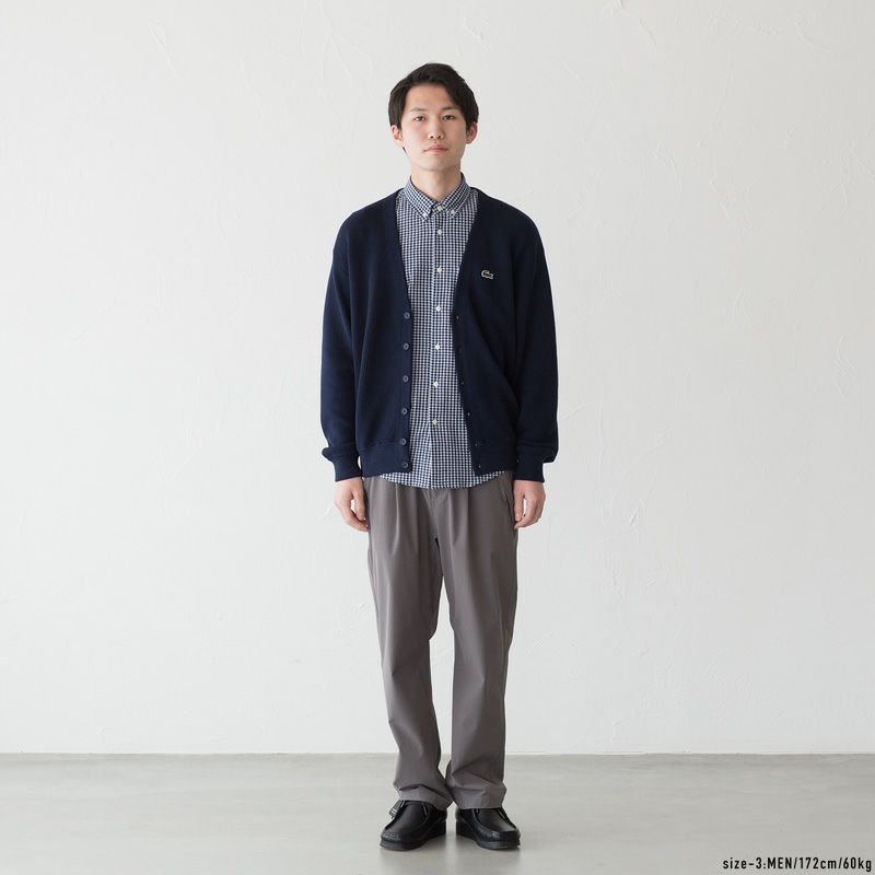 幅広いスタイリングに取り入れやすいミニマルデザインでありながら、左胸のワニ刺繍や身頃サイドから袖にかけてのストライプなど、アクセントもしっかり主張。