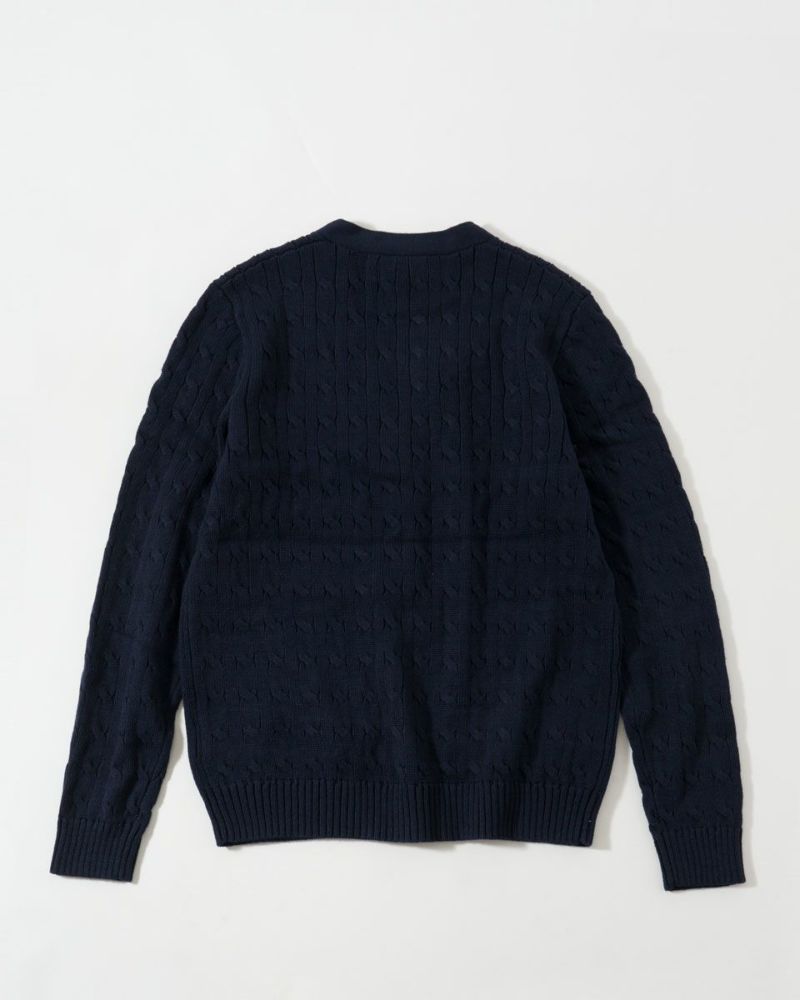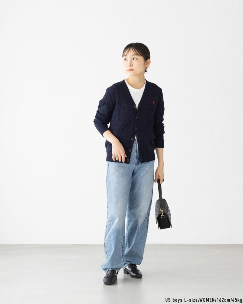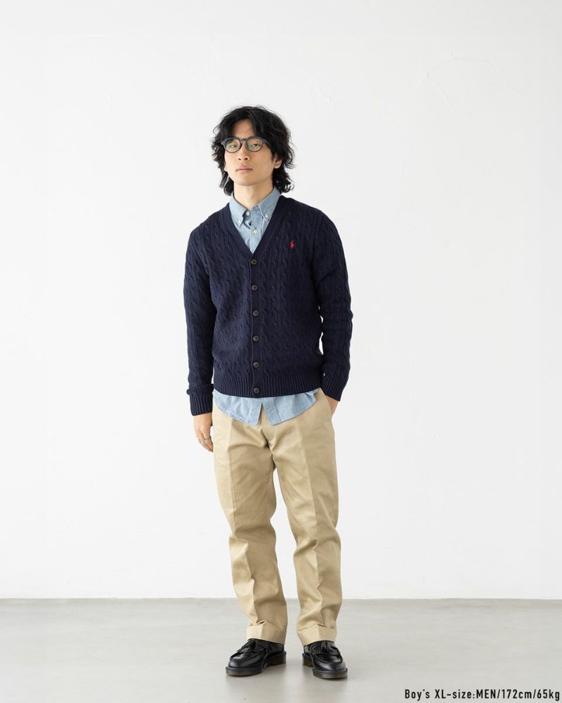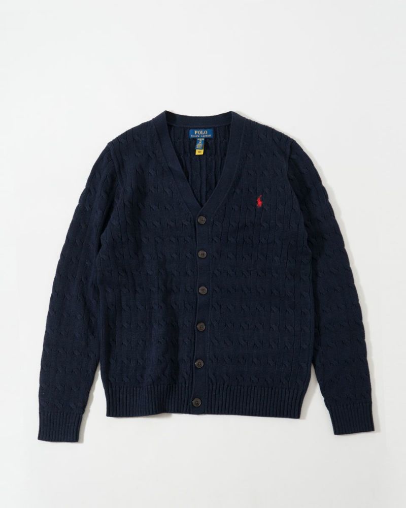 クラシカルなテイストで着こなせる名作、ラルフローレンのケーブルニットシリーズ。こちらは多彩なレイヤードを楽しめるボーイズ規格のカーディガンです。