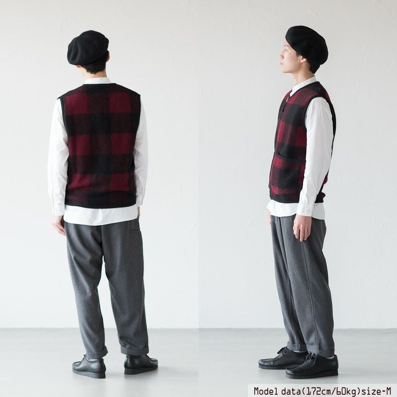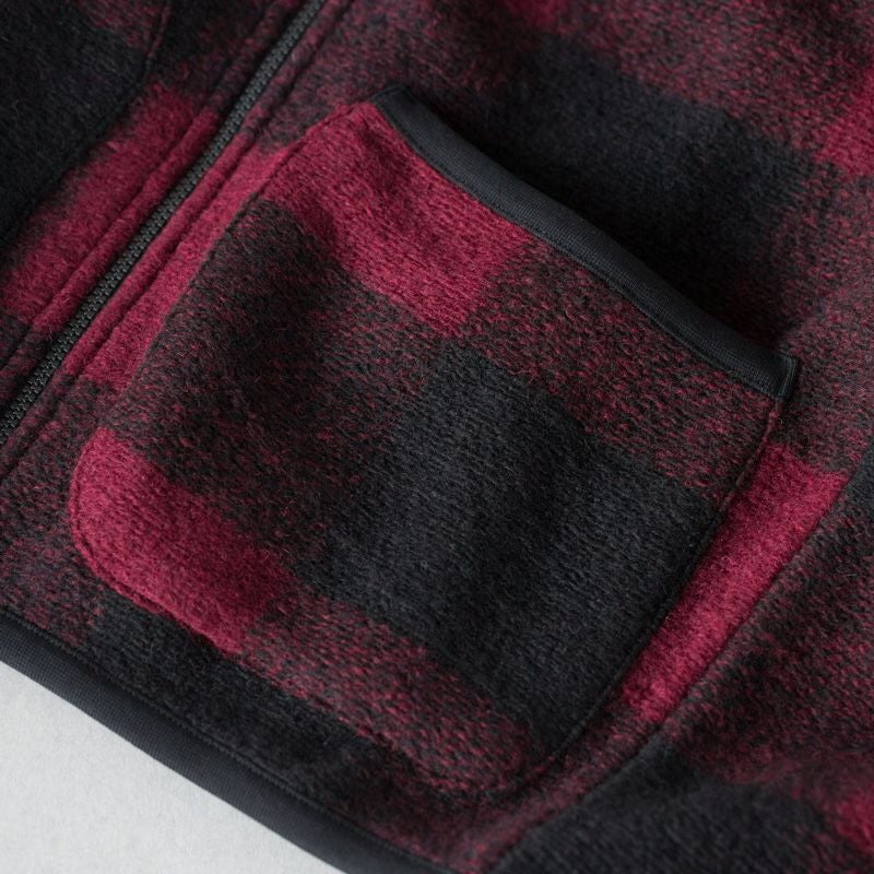こちらは、軽量で保温性のあるウールフリースを使った、バッファローチェックのベスト。