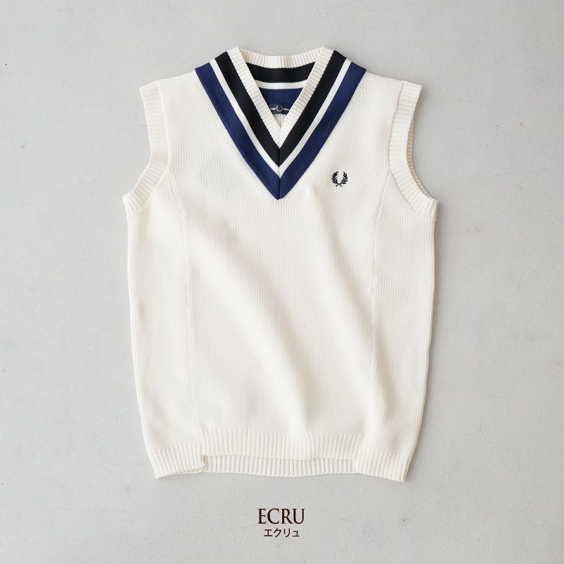 フレッドペリー チルデン ベスト K4527 ストライプド Vネック タンクトップ Striped V-Neck Knitted Tank