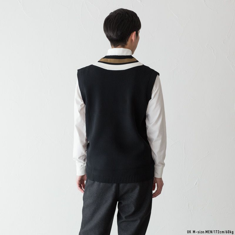 汚れが落ちやすく洗濯機で洗えるイージーケアなポリエステルニットである点も魅力です。秋冬のプレッピーな着こなしを盛り上げてくれる、毎シーズン人気のチルデンニット、いかがでしょうか。